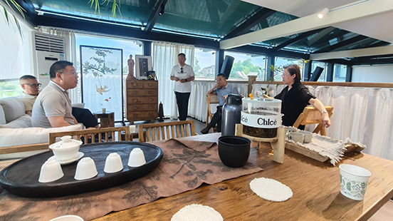 在此背景下,全过程人民民主巴渝实践站应运而生,选址于双桂湖国家湿地公园内的“青箬小壶”湿地书吧,总面积247平方米。站点采用“实践站+茶书吧”融合模式,巧妙将民主协商平台嵌入传统文化空间,打造集思想性、功能性与美学体验于一体的“小而精、小而美”沉浸式民主展示空间。